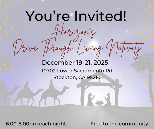 As you enter the north entrance to Horizon Christian Fellowship, you will be greeted and given instructions for driving through. Once you begin, the full presentation will take an estimated 20-30 minutes. As you drive through, you will stop at 10 different scenes where you will see and hear the Christmas story come to life with actors and animals. Dress warm since you will be driving with your car windows down.